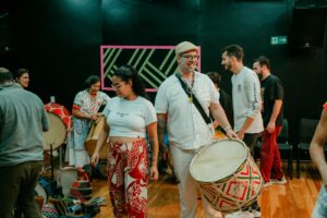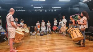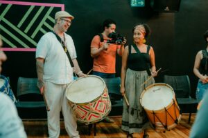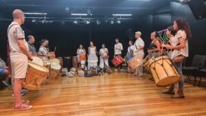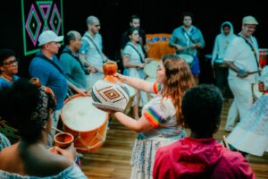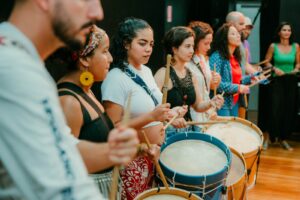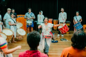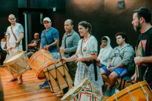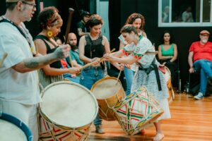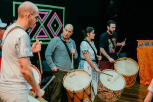 A conexão entre os grupos ganhou vida em um evento especial: no dia 22 de setembro, o Maracatucá realizou uma oficina seguida de uma apresentação ao lado de Felipe Perez. O encontro fez parte do projeto “Patrimônio Vivo: Tradições do Brasil – Maracatu de Baque Virado”, realizado no CEU das Artes (R. Treze de Outubro – Jardim da Vitória, Itu – SP).